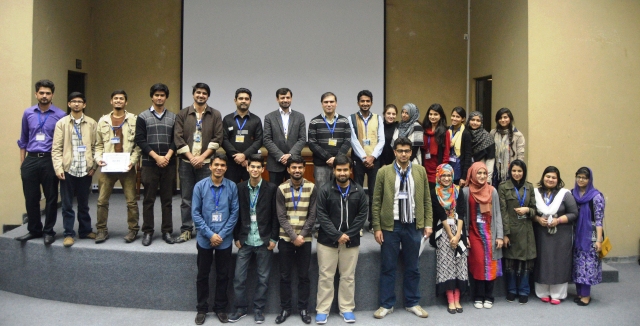 The Senior Biology Society (SBS) organized Sci-Biz 2.0 on 19 February 2015. Participants were shown a sci-fi movie and were then provided with an opportunity to pick scientific flaws or bloopers in it. Dr Nadeem Asad and Dr Muhammad Irfan from the Department of Biological Sciences judged the event. Also present at the event were Dr Hamid Latif and Dr Sarah Yasir from the Department of Physics. Mr. Asfandyar won the first prize, who was awarded with a certificate as well as a cash prize.