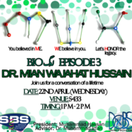 Bio لوگ, a highly successful series of events by Senior Biology Society (SBS) which reformed the landscape of teacher-student interaction, brings to you the most awaited speaker yet-Dr Mian Wajahat Hussain. Join us for a conversation of a lifetime with the third story of the Bio لوگ series.
