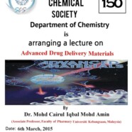 The Speers chemical Society and the Department of Chemistry are arranging a lecture on Advanced Drug Delivery Materials by Dr Mohd Cairul Iqbal Mohd Amin, Associate Professor, Faculty of Pharmacy Universiti Kebangsaan, Malaysia.