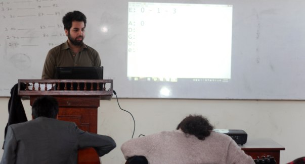 Shahrukh K Sherwani initiated guitar lessons at FCC. Although most of the students were initially inexperienced, they were quick to catch up after the first session on one string strumming.