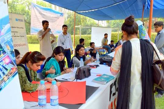 The Student Activities Office organized University Societies Fair and College Societies Fair on 14 and 15 September 2015 respectively. Students were introduced to the different societies serving at Forman Christian College. The Societies stalls were organized to explain students about the importance of co-curricular activities, leadership opportunities for the students, the working of student societies and how they can be a part of any society. Students were also allowed to register in their desired societies. Opportunities were available for departmental and campus wide societies to set up display tables, distribute leaflets and hang banners to build awareness of their societies and to recruit new members. University Chief Proctor Prof. Muhammad Nawaz , Intermediate Chief Proctor Prof Muhmmad Asif Shami and Director Student Activities Mr Kashif Sharoon were also present during the event.