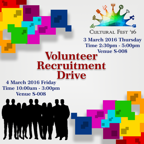 Volunteer Recruitment Drive for Cultural Festival ’16 Mar01