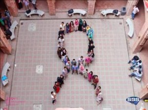 Following this, a Human Logo of the symbol ‘Pink Ribbon’ was also made outside, in which students volunteered to be a part of this noble cause.